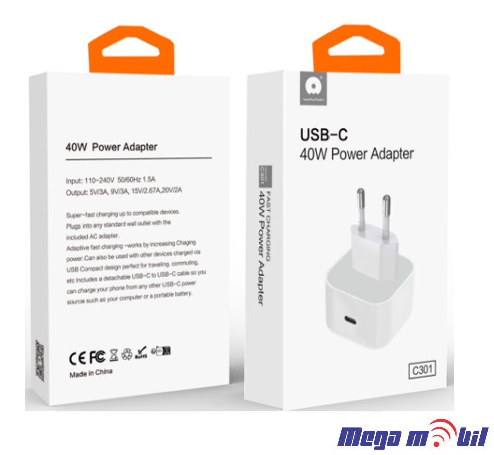 40W Supports compatible dynamic protocol AVS fast charging Input: 110-240V 50/60Hz 1.5AOutput: 5V/3A,9V/3A,15V/2.67A,20V/2AColour:White
