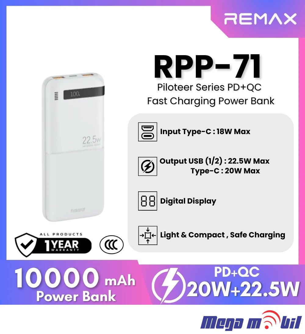 Baterija eksterna 10000mAh REMAX Piloteer RPP-71 FAST 22.5W+PD 20W white
