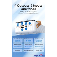 - 5 outputs and 4 inputs to charge iPhones and Android devices.