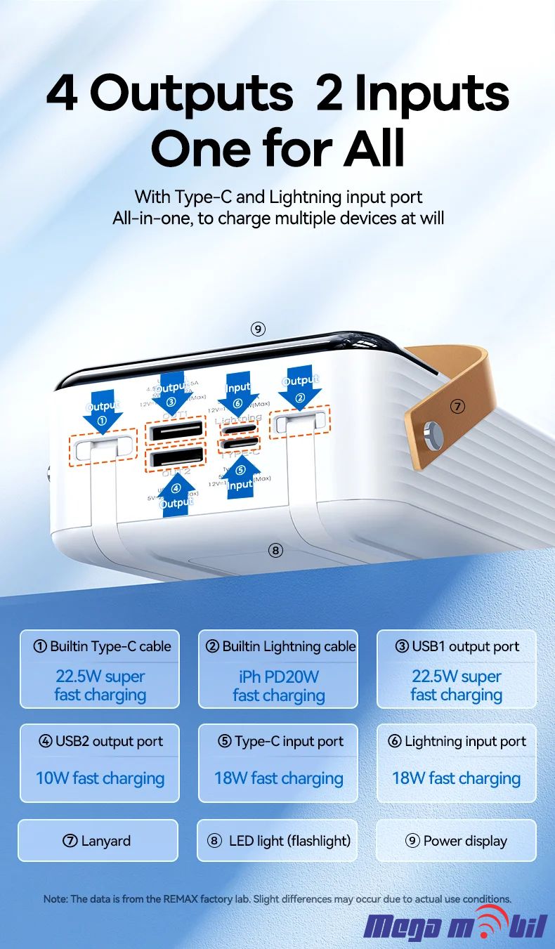 - Builtin detachable Type-C cable for 22.5W super-fast charging.
