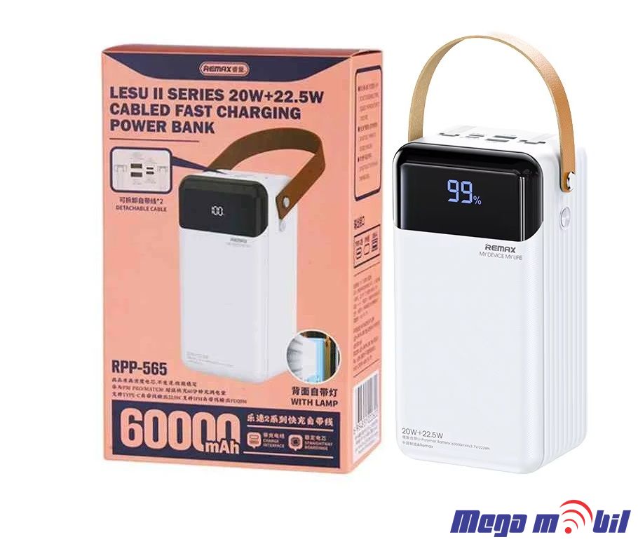 Baterija eksterna 60000mAh REMAX Lesu II RPP-565 PD 20W+QC 22.5W white