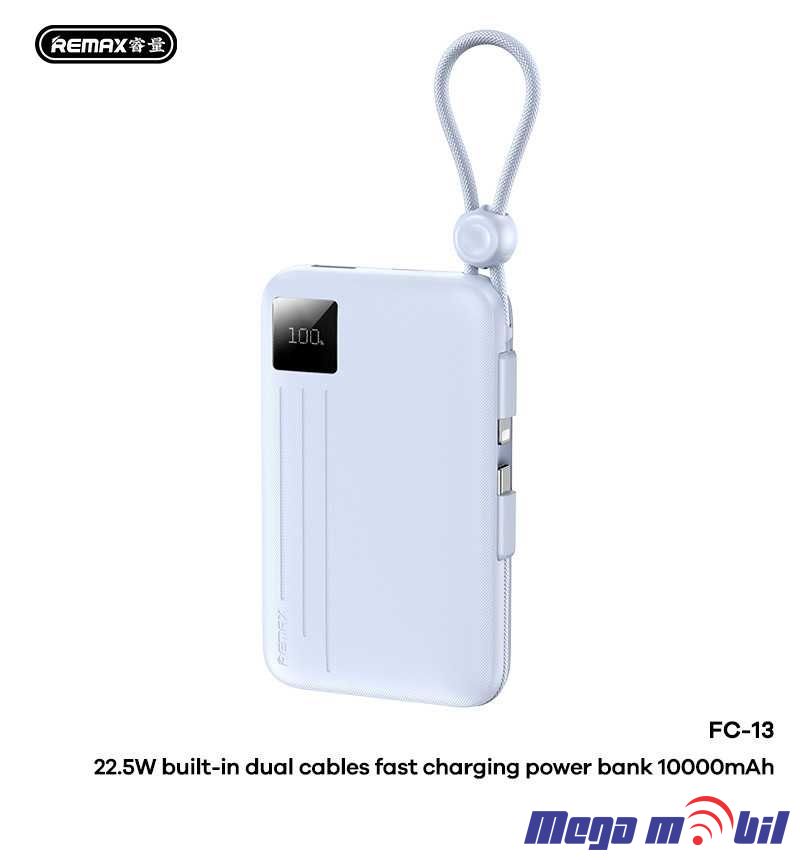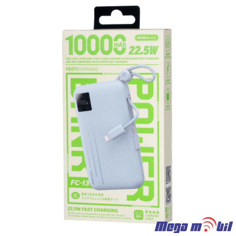 - Ideal for travelers, commuters, students, or anyone constantly on the go, this power bank is designed to meet the needs of modern lifestyles. Whether you're heading on a long-haul flight or a day out with friends, having the REMAX FC-13 ensures that low battery is never a concern.