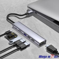 Adapter Type C to HDMI 4K+USB3.0+USB2.0x2+SD/Micro SD+PD100W ST-CM0701 (7 in 1)