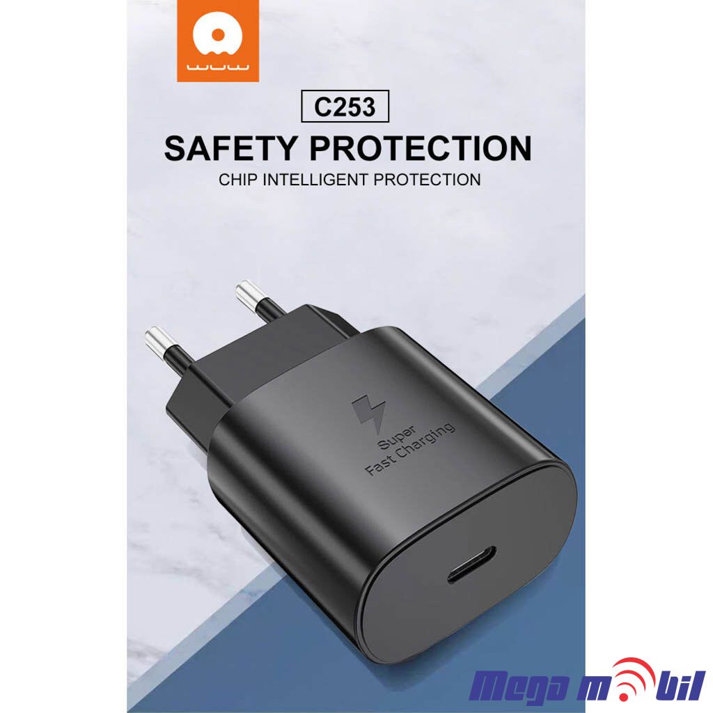 SX/PD 25W ChargerInput:AC180V-240V~50/60Hz0.7AOutput:USB-C:5V3A 9V2.77A 12V/2.08APPS:3.3-5.9 3A,3.3-11V/2.75A (25W)Colour: BlackType:EU type charger