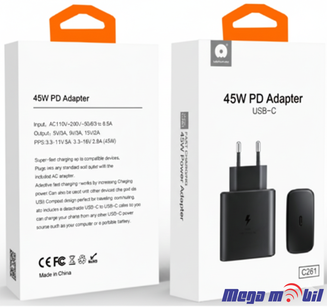 Input:AC110V-240V~50/60Hz 0.8AOutput:5V/3A,9V/3A,15V/2APPS:3.3-11V 5A 3.3-16V 2.8A (45W)Agreement: PD/QC3.0/PPSColour: BlackModel:EU