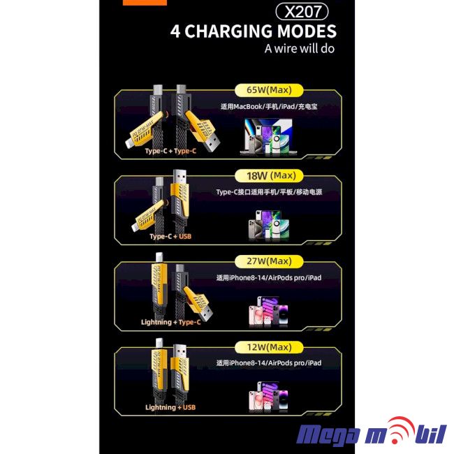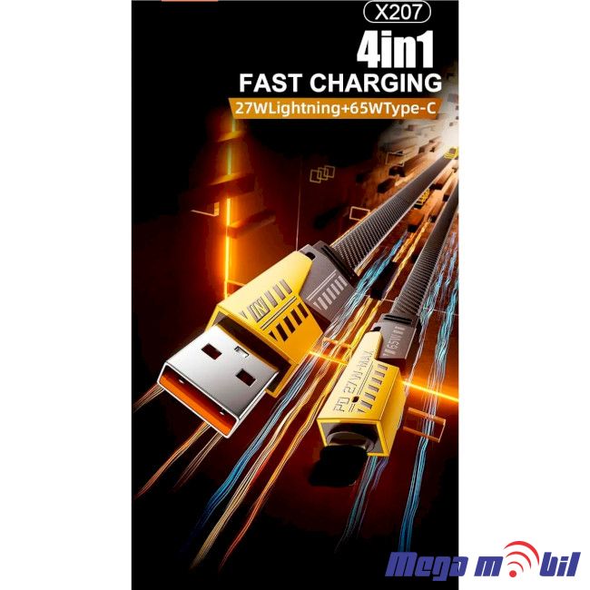 Data Kabel WUW-X207 4 vo 1 65W 1m FAST yellow