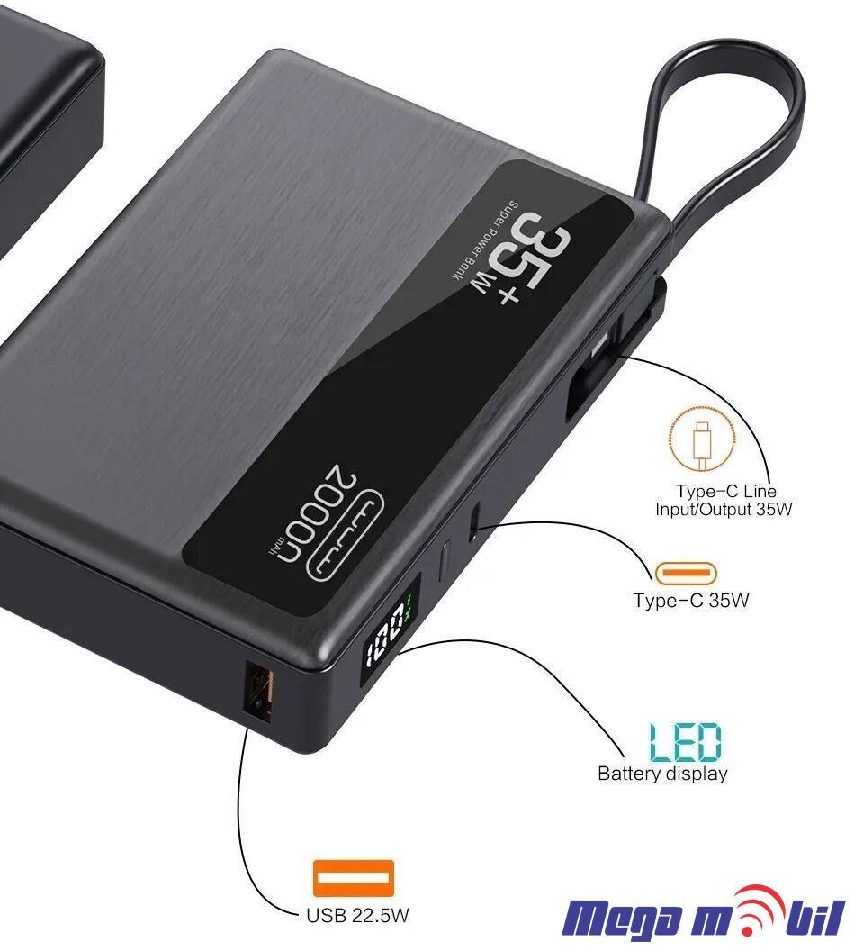 Baterija eksterna 20000mAh WUW-Y155 FAST+PD 35W black