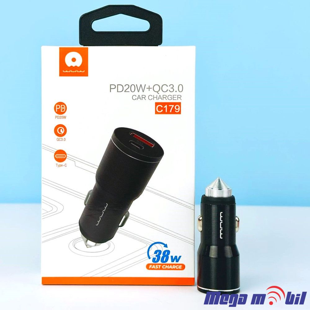 38W Fast Charge USB & Type-C port 20W PD + QC3.0 fast car charger